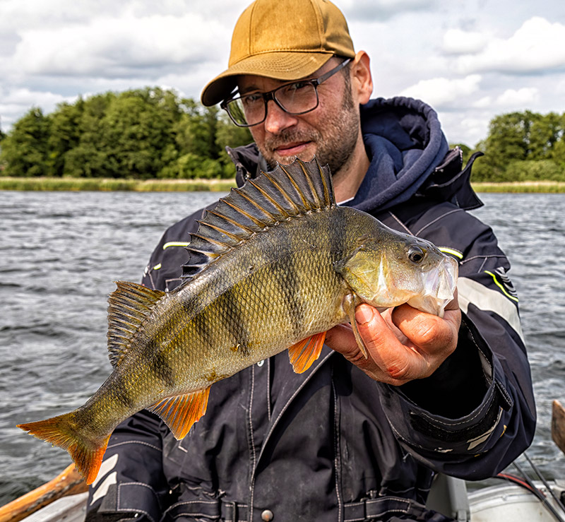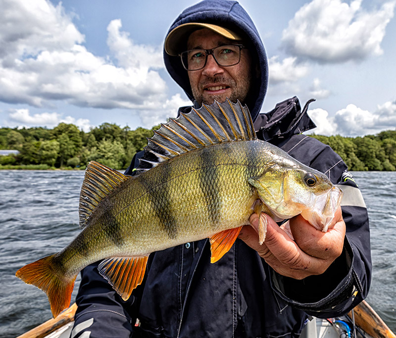 Auf Twitchbait kamen auch ab und zu welche an die Oberfläche. Daniel leierte auch ab und zu einen Gummi durch und fing auch noch einen guten Hecht von ca. 86 cm. Die Fische kamen alle wieder am Kraut oder kurz davor auf tiefen zwischen 2.5-4m. Somit war es am Ende noch eine gute Tour mit schönen Fischen gewesen. Endergebnis: insgesamt ca. 30 Fische, die größten Barsche waren so zwischen 34 und 37 cm.